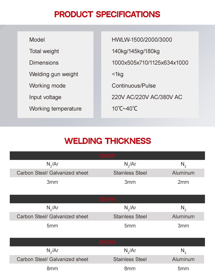 1) Vật liệu và độ dày hàn: Để phù hợp với Công suất máy phát laser phù hợp với bạn.
