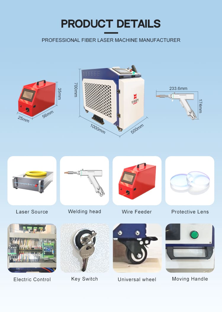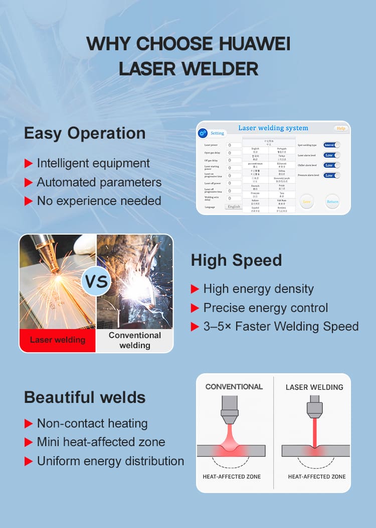 cácMÁY LASER CỦA Huawei Máy hàn Laser cầm tay bằng thép không gỉ tự động Máy hàn cầm tay 3 trong 1là một người thông minhMáy hàn Laser cầm tayđược thiết kế để có độ chính xác cao, tự động hóa và linh hoạt. Nó tích hợp các chức năng hàn, làm sạch và cắt vào một thiết bị nhỏ gọn, mang lại hiệu suất ổn định và hiệu quả cho thép không gỉ và các vật liệu kim loại khác. Được thiết kế với hệ thống điều khiển thông minh và vận hành tiện dụng, nó đảm bảo các đường hàn đồng đều, tác động nhiệt thấp và bề mặt hoàn thiện tuyệt vời. cácMÁY LASER CỦA HuaweiMáy hàn cầm tay 3 trong 1 mang lại năng suất vượt trội cho các ứng dụng sản xuất công nghiệp, gia công kim loại và sửa chữa.